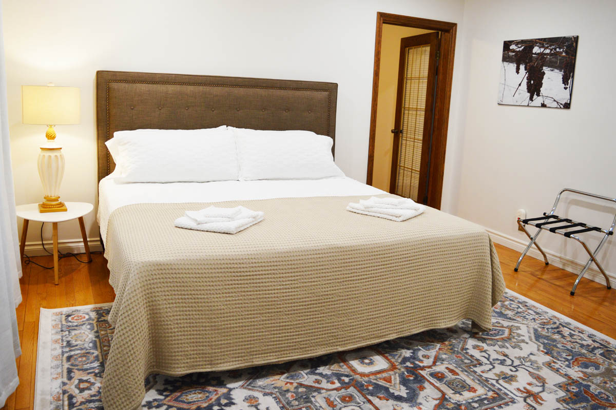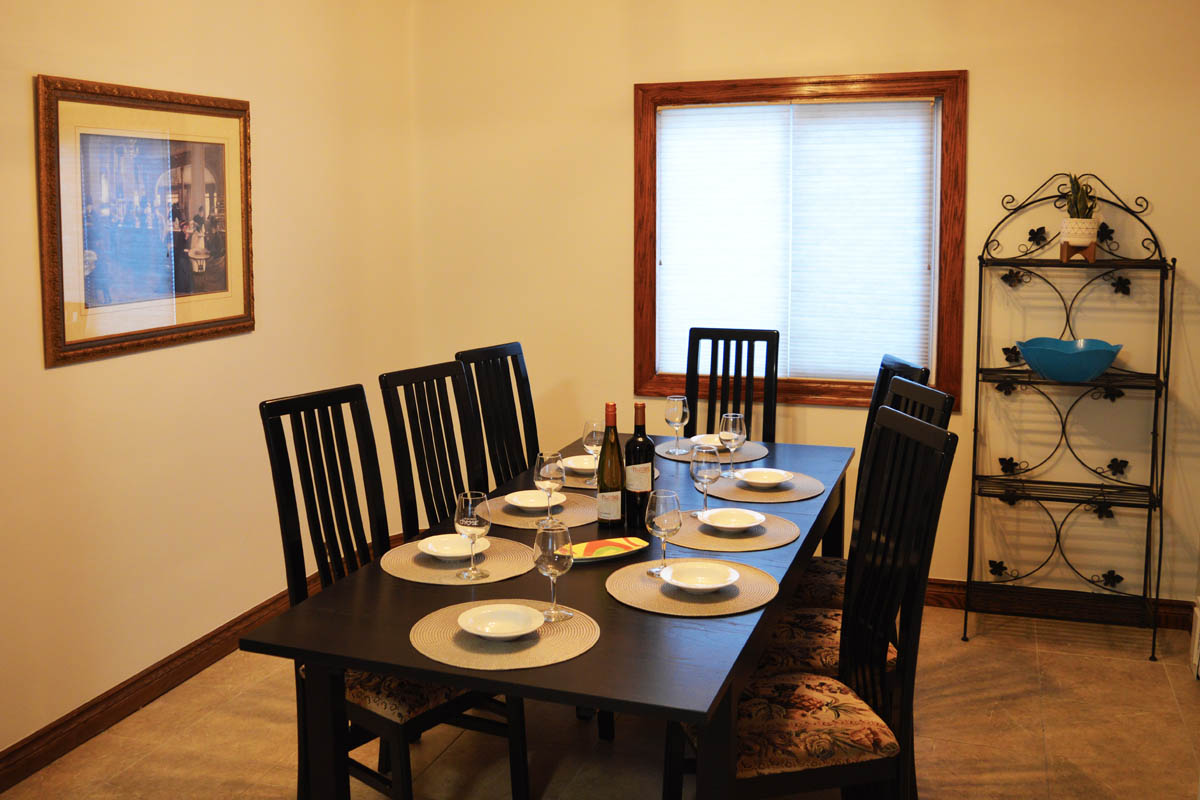 The Cottage at Pillitteri is a large 3 bedroom home with a living room, dining room and upstairs game / play room. The house has a 3 piece bathroom adjacent to each bedroom and a powder room adjacent to the main entrance. The house has a fully stocked kitchen with double oven, large fridge, six burner gas range, dishwasher, microwave, coffee maker, toaster and kettle. The dining room comfortably seats 8 people.